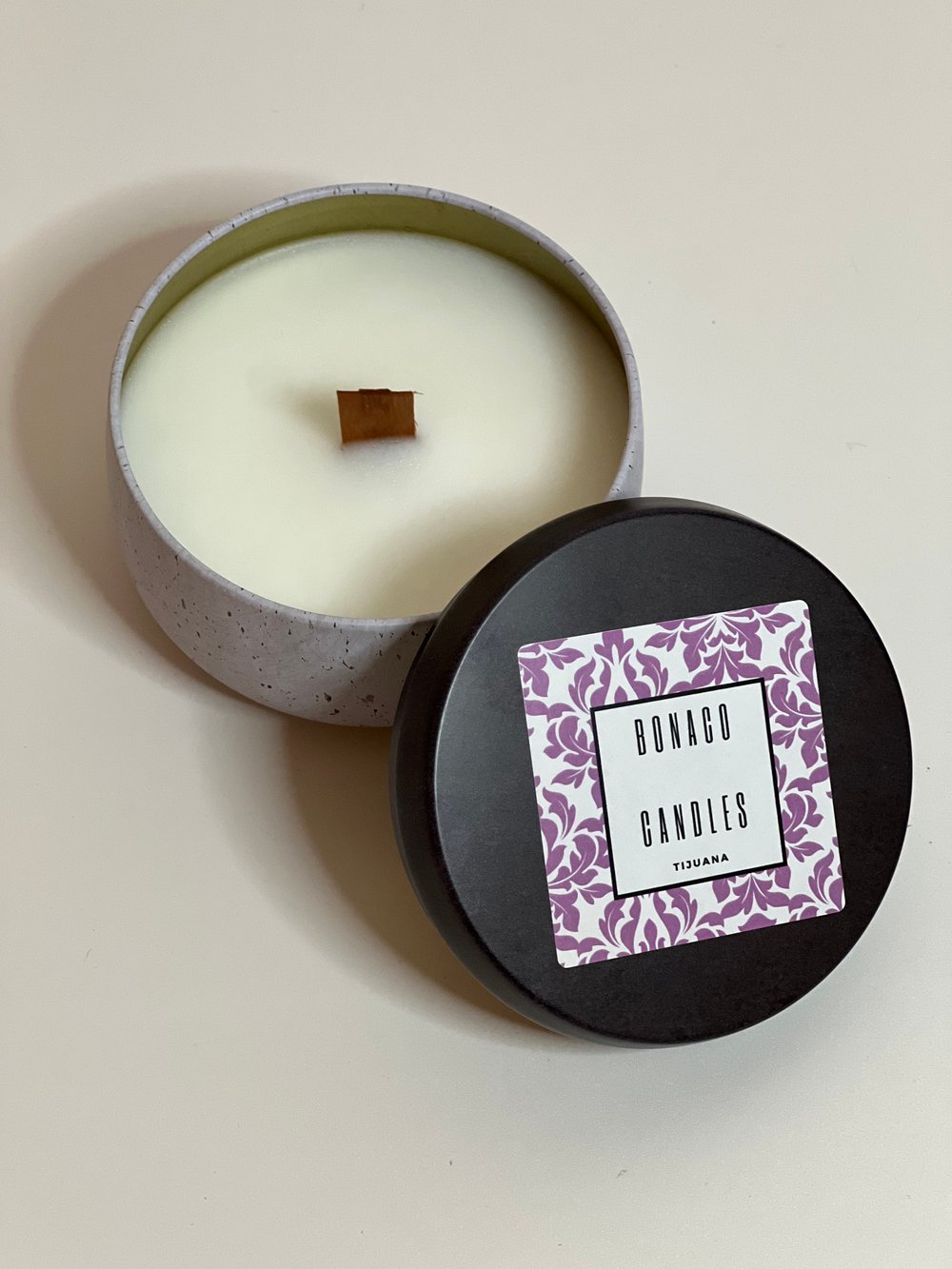8 oz. Tinplate Candle with Lid, medium cherry wooden wick